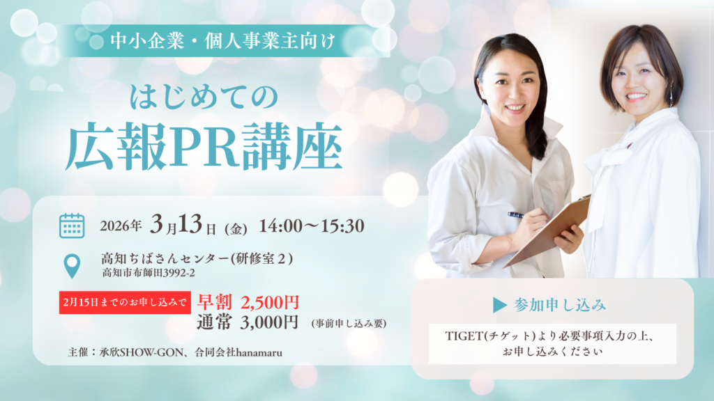 高知県では、PRプロデューサーとして、バリバリご活躍の承欣SHOW-GONの吉田様と一緒に開催いたします。